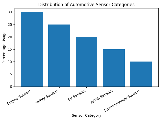 The chart below illustrates how different automotive sensor categories contribute to modern vehicle systems. Engine and safety sensors remain dominant, while EV and ADAS sensors continue to grow as smart mobility expands.